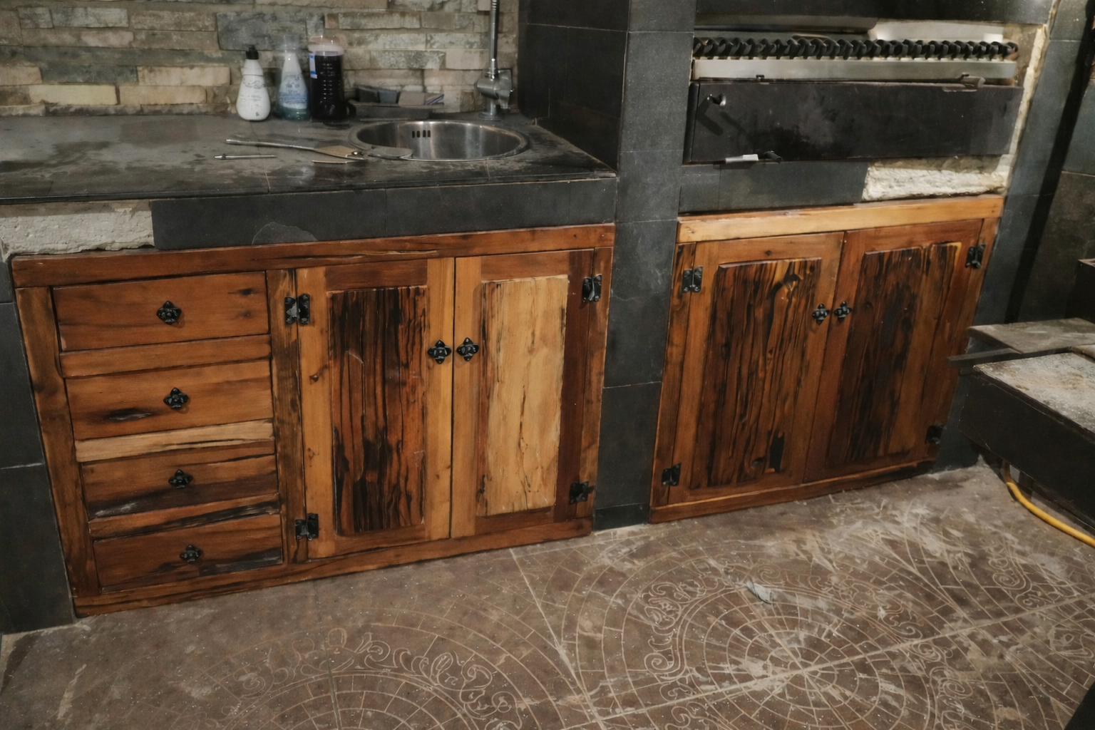 En este proyecto el cliente selecciono un espacio del quincho para la fabricación de muebles inferiores y espacio de almacenajes, priorizando funcionalidad, resistencia y una estética rústica que realza la calidez natural de la madera.