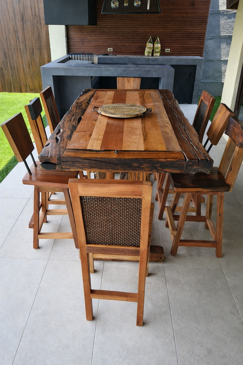 Esta Mesa de Comedor representa la convergencia entre historia industrial y diseño contemporáneo. Los durmientes ofrecen una estructura robusta con patina auténtica que refleja décadas de servicio ferroviario.