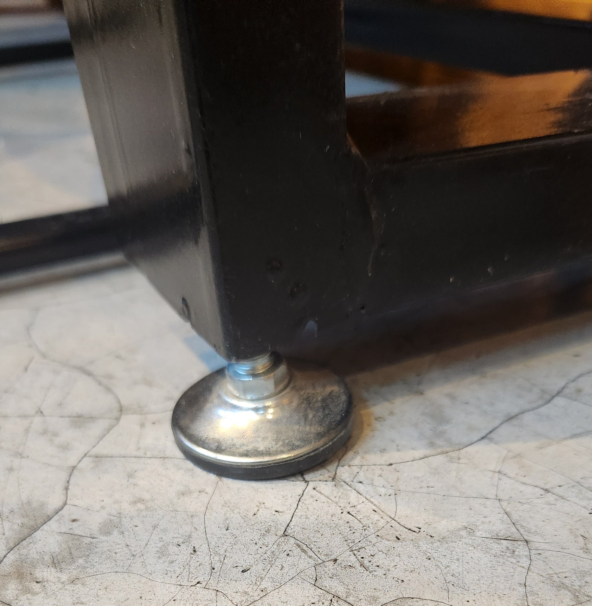 Base en fierro Alce, resiste cargas significativas sin deformación garantizando estabilidad y resistencia con niveladores metálicos para ajustar al piso