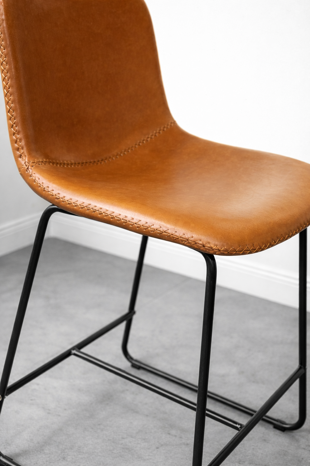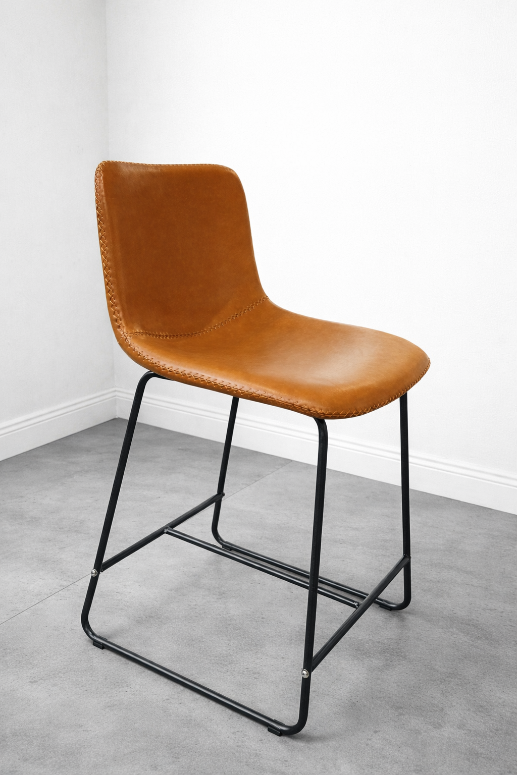 Taburete Burgos en ecocuero que combina confort y sostenibilidad. Su diseño ergonómico proporciona un asiento acogedor ideal para espacios de lectura o descanso